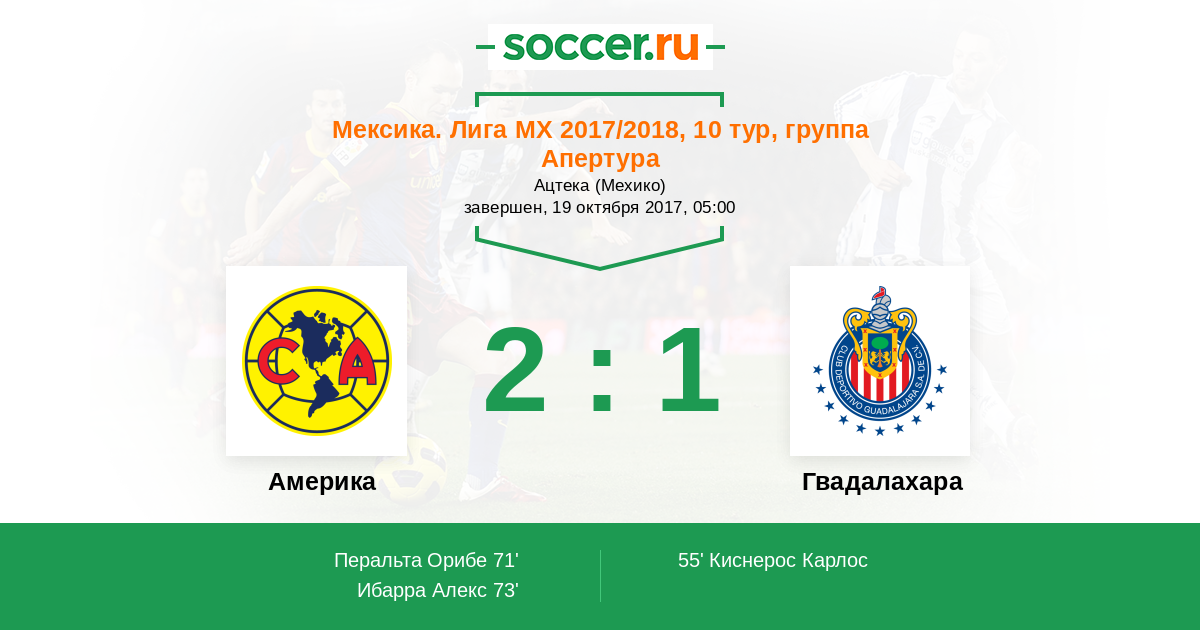 73' (2:1) Ибарра Алекс (30) (Урибе Матеус (8))
