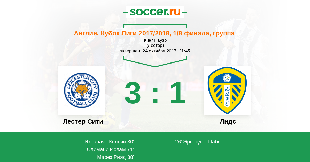 Протокол матча Лестер Сити против Лидс