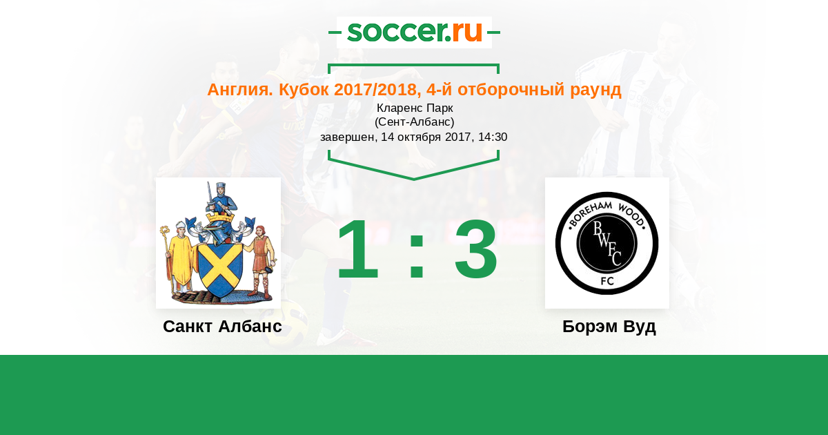 Англия. Национальная Лига Север/Юг 06.10.2014 Борэм Вуд Логотип футбольный клуб Борэм Вуд (Борэмвуд) 2:1 Логотип футбольный клуб Санкт Албанс Санкт Албанс