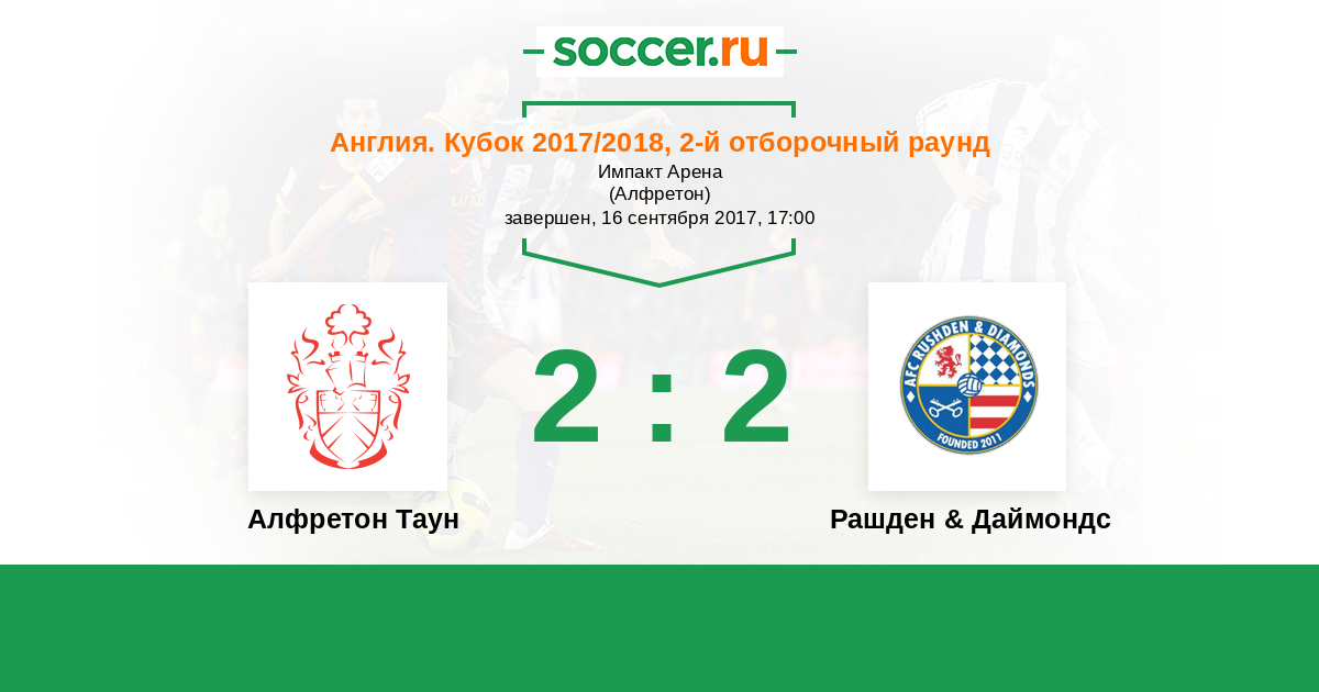 Англия. Истмийский дивизион 23.10.2018 Рашден & Даймондс Логотип футбольный клуб Рашден & Даймондс (Иртлингбороу) 3:1 Логотип футбольный клуб Коулвил Таун Коулвил Таун