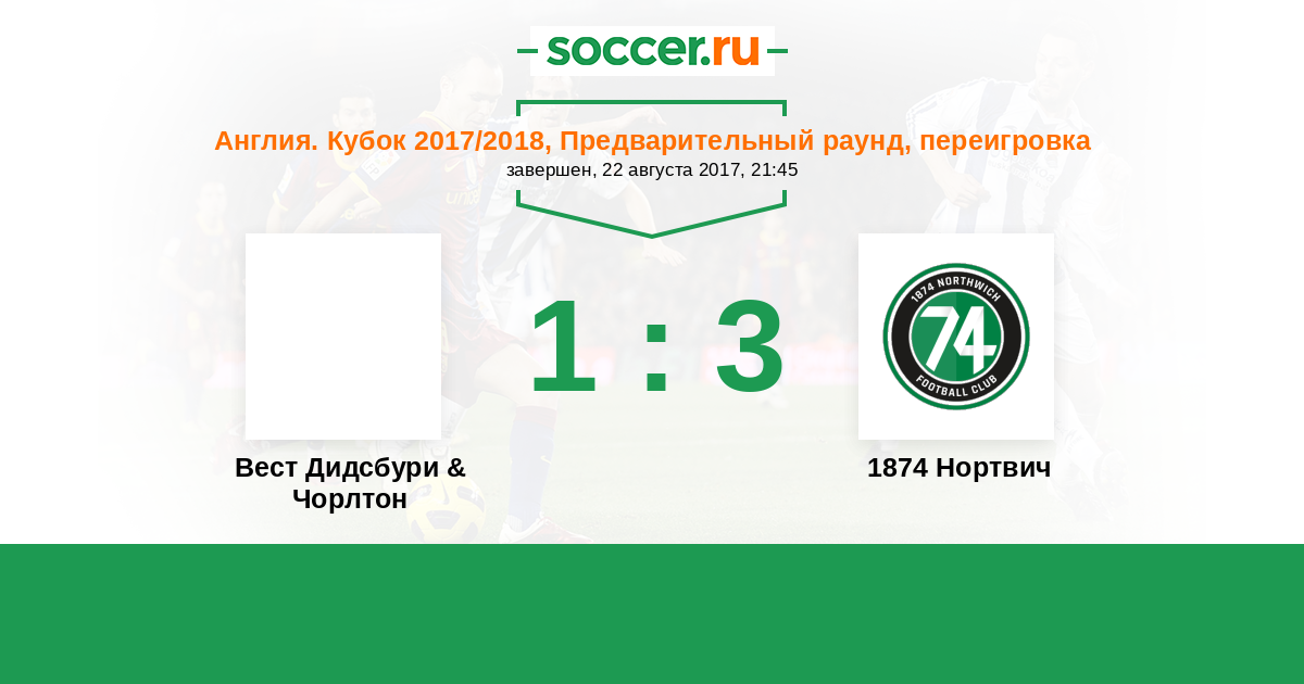История матча Вест Дидсбури & Чорлтон против 1874 Нортвич