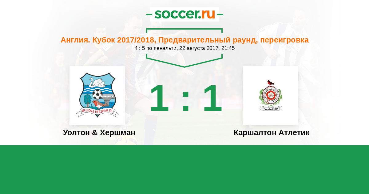 История матча Уолтон & Хершман против Каршалтон Атлетик