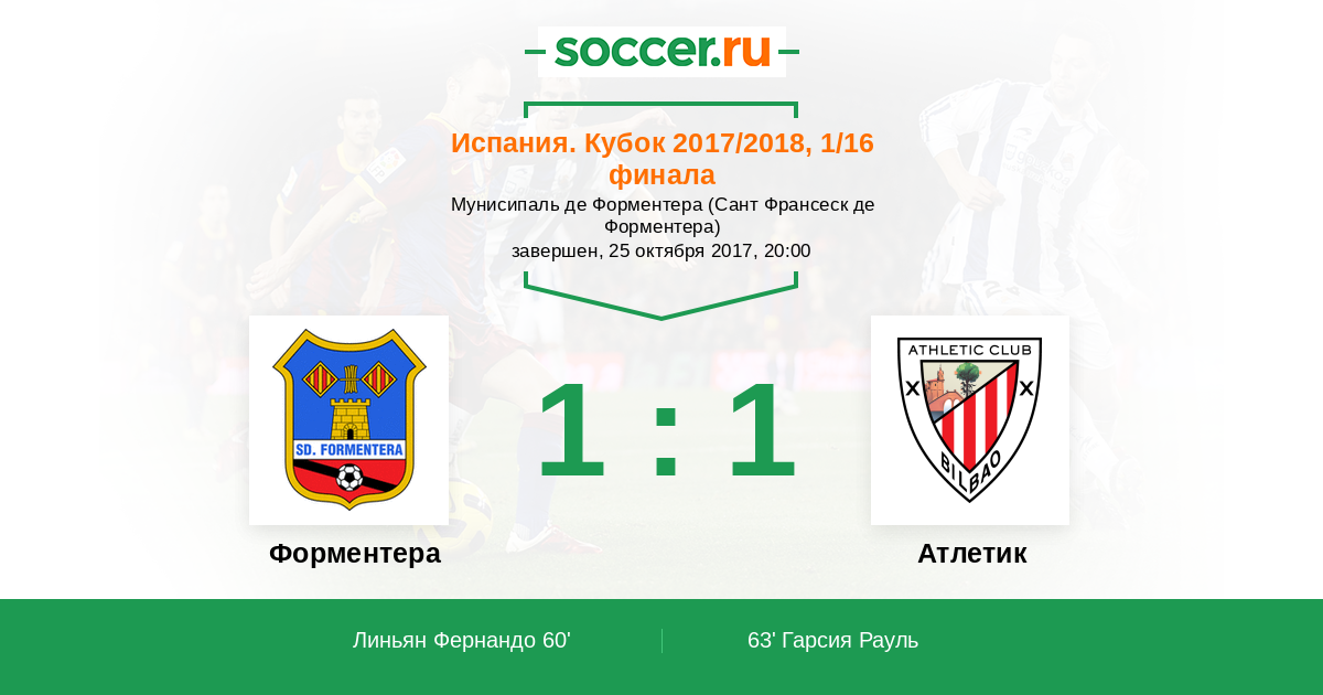 Протокол матча Форментера против Атлетик