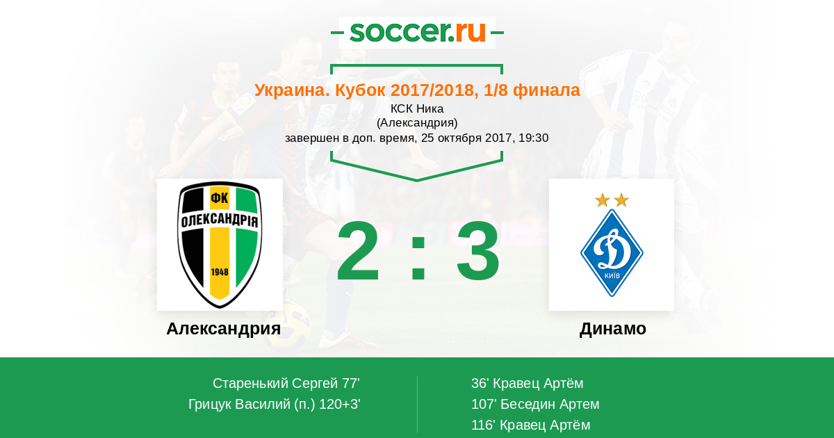 Протокол матча Александрия против Динамо