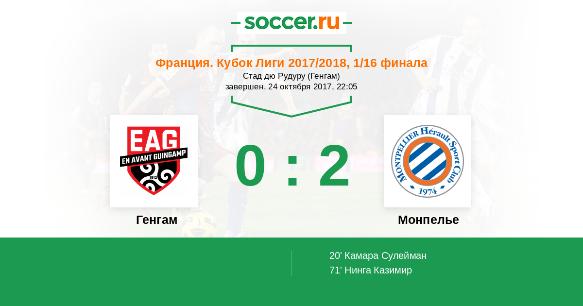 Протокол матча Генгам против Монпелье