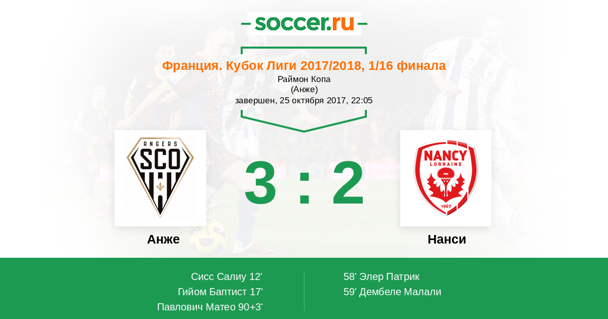 Протокол матча Анже против Нанси