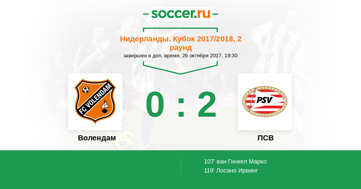 Протокол матча Волендам против ПСВ
