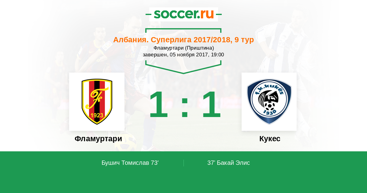 Протокол матча Фламуртари против Кукес