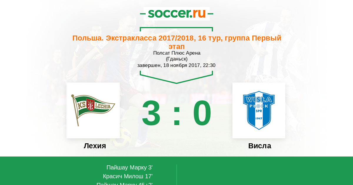 Протокол матча Лехия против Висла