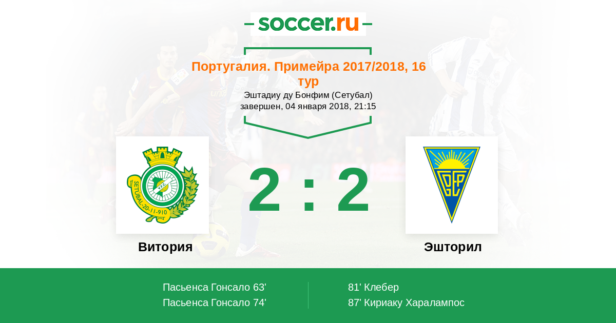 Протокол матча Витория против Эшторил