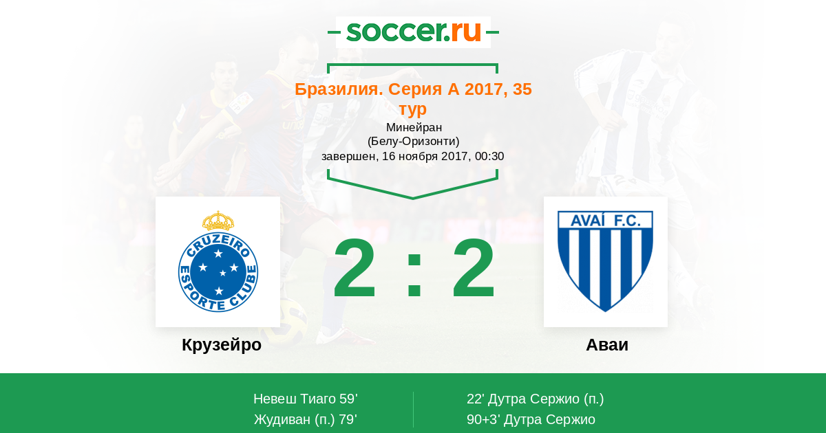 Протокол матча Крузейро против Аваи