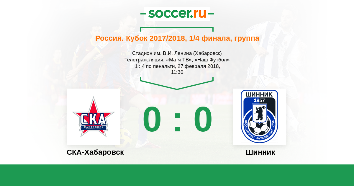 Протокол матча СКА-Хабаровск против Шинник