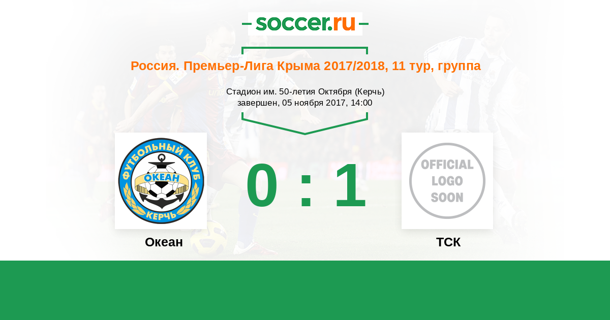 Россия. Премьер-Лига Крыма 23.04.2017 Океан Логотип футбольный клуб Океан (Керчь) 6:1 Логотип футбольный клуб ТСК (Симферополь) ТСК