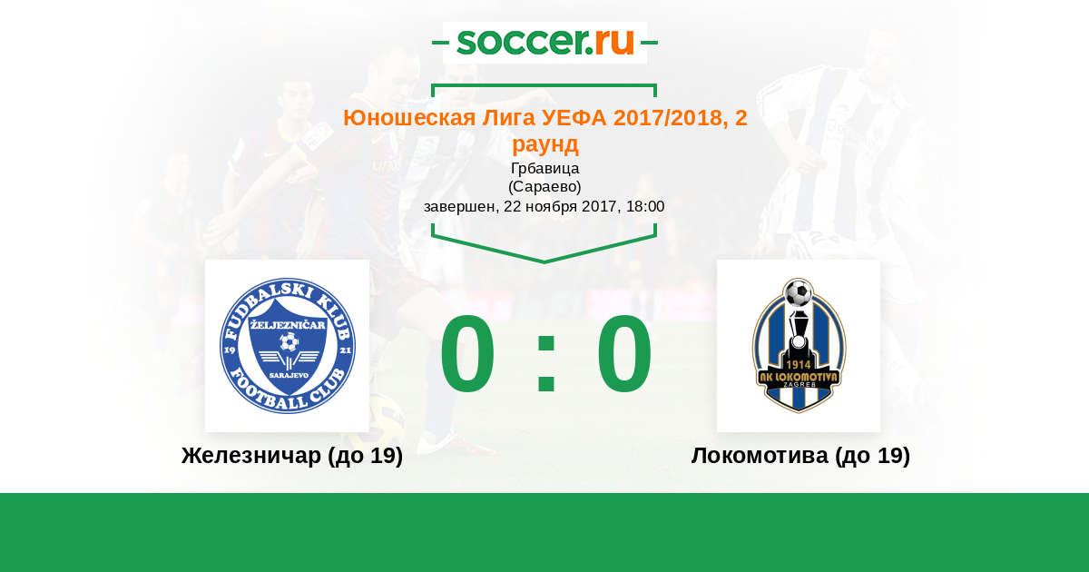 Протокол матча Железничар (до 19) против Локомотива (до 19)
