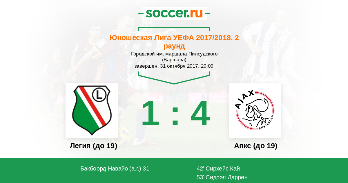 Протокол матча Легия (до 19) против Аякс (до 19)