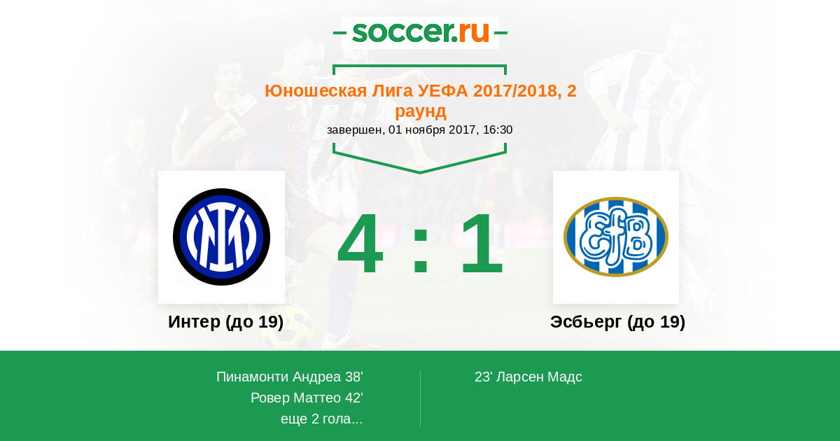 Протокол матча Интер (до 19) против Эсбьерг (до 19)