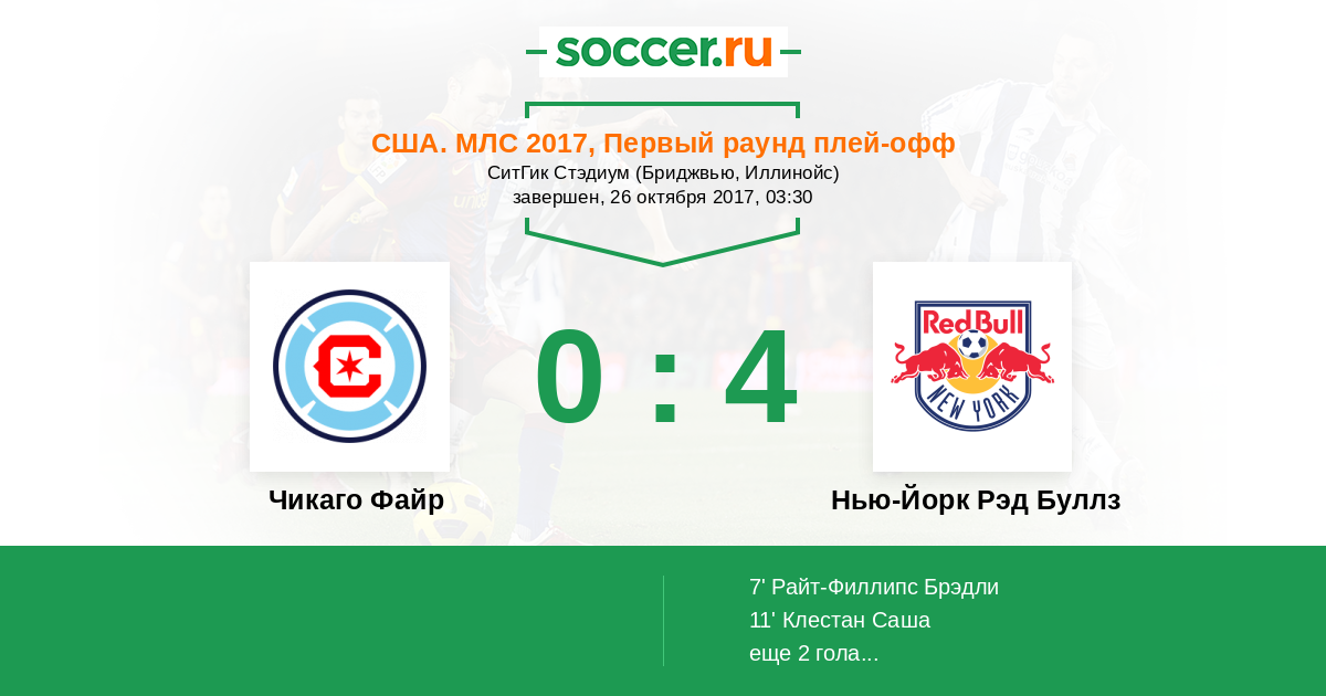 Протокол матча Чикаго Файр против Нью-Йорк Рэд Буллз