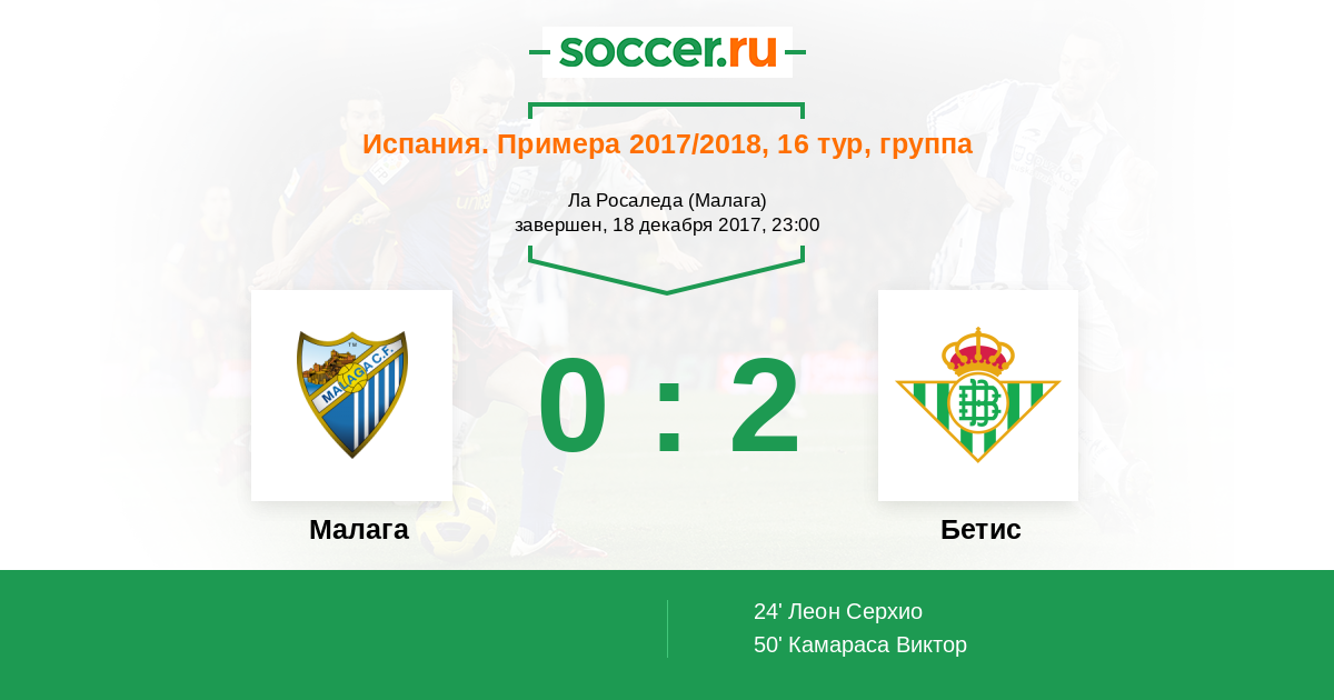 Протокол матча Малага против Бетис