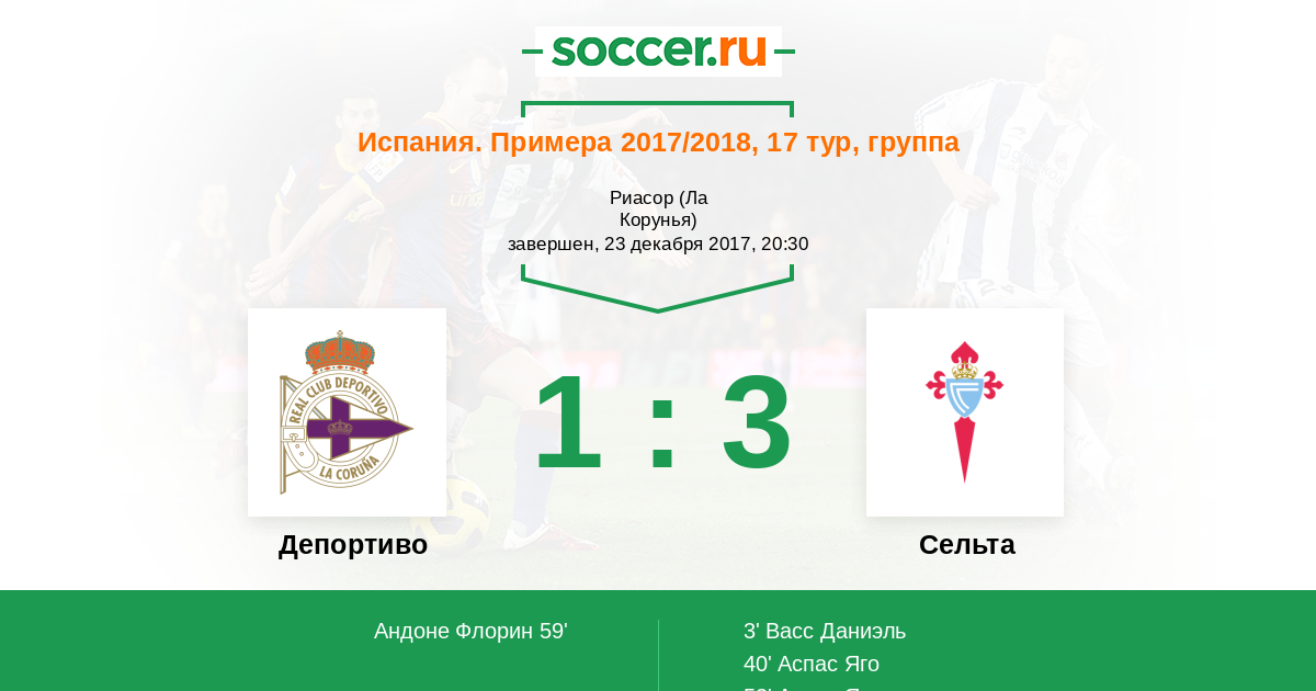 Протокол матча Депортиво против Сельта