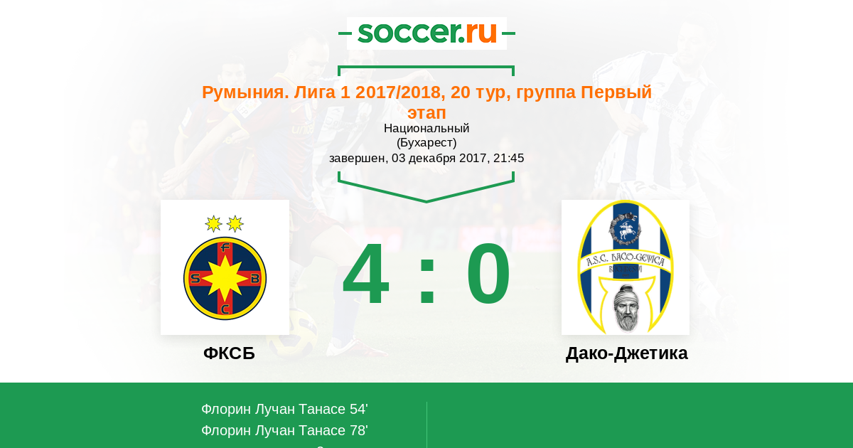 78' (2:0) Флорин Лучан Танасе (10) (Коман Флоринел (17))