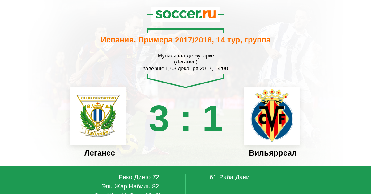 Протокол матча Леганес против Вильярреал