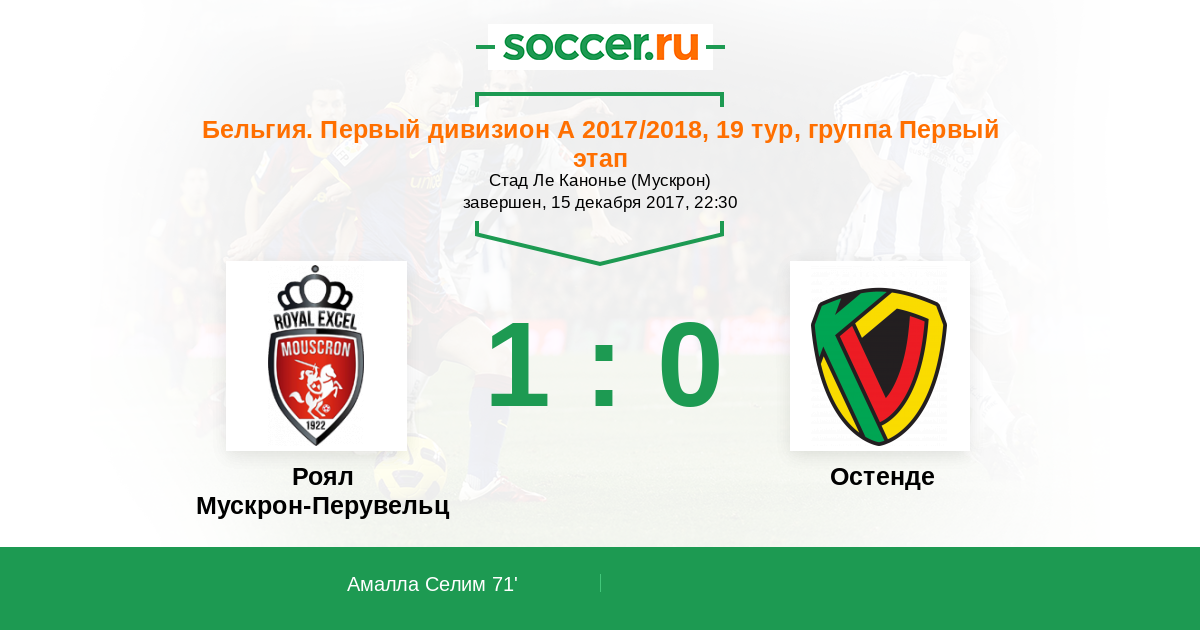 Протокол матча Роял Мускрон-Перувельц против Остенде