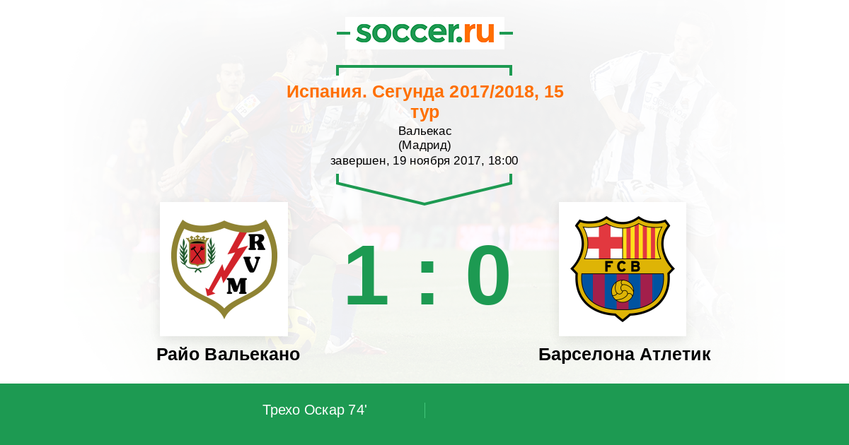 Протокол матча Райо Вальекано против Барселона Атлетик