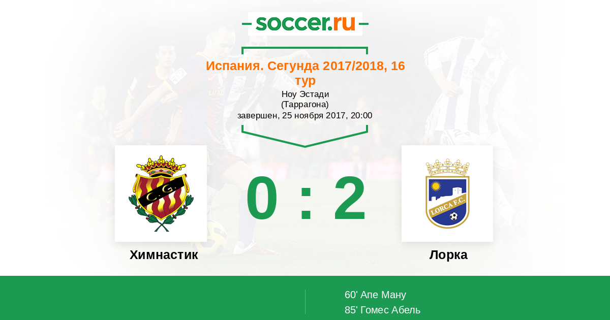 Протокол матча Химнастик против Лорка