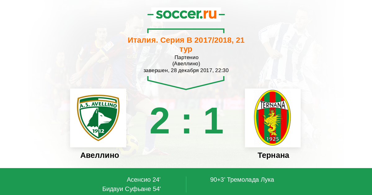 54' (2:0) Бидауи Суфьане (26) (Молина Сальваторе (17))