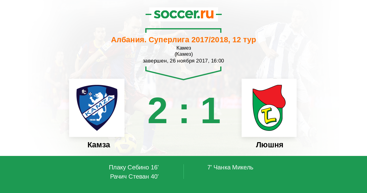 Протокол матча Камза против Люшня