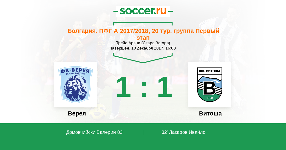 Протокол матча Верея против Витоша