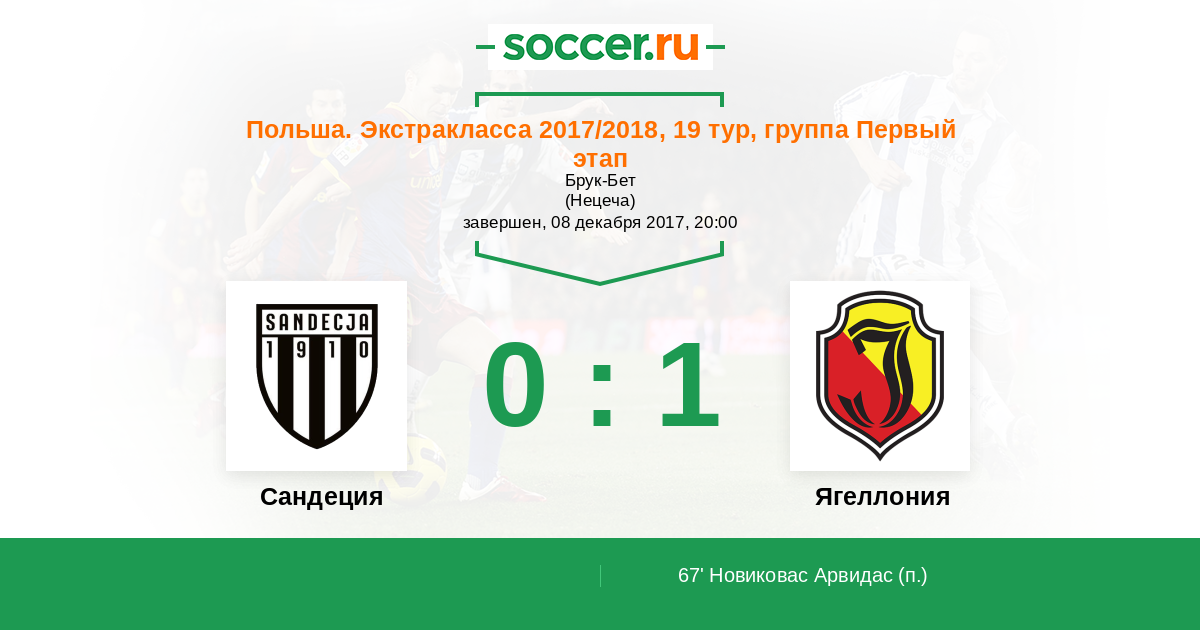 Протокол матча Сандеция против Ягеллония