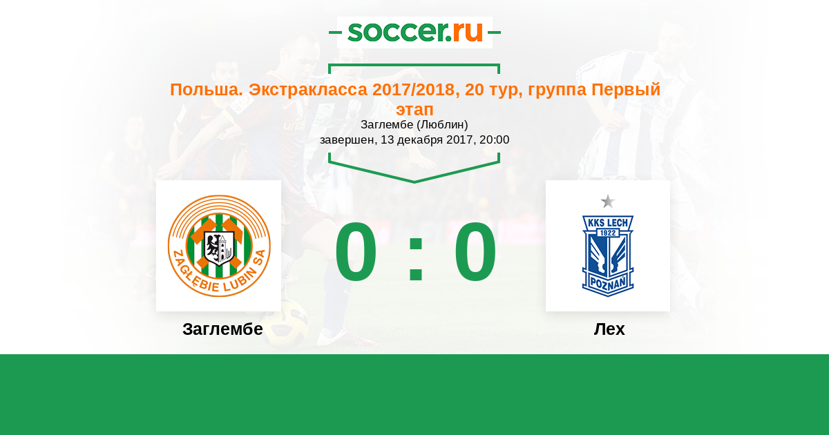 Протокол матча Заглембе против Лех