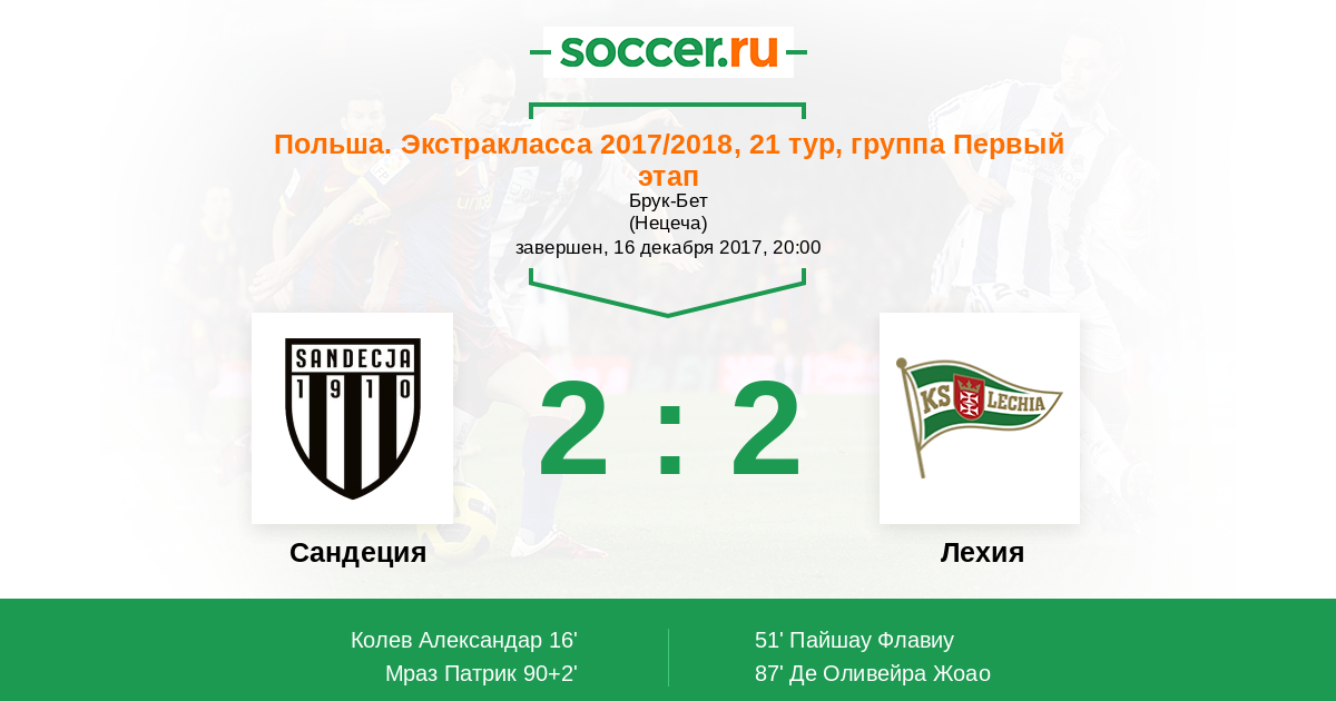 Протокол матча Сандеция против Лехия