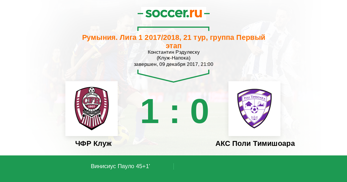 Протокол матча ЧФР Клуж против АКС Поли Тимишоара