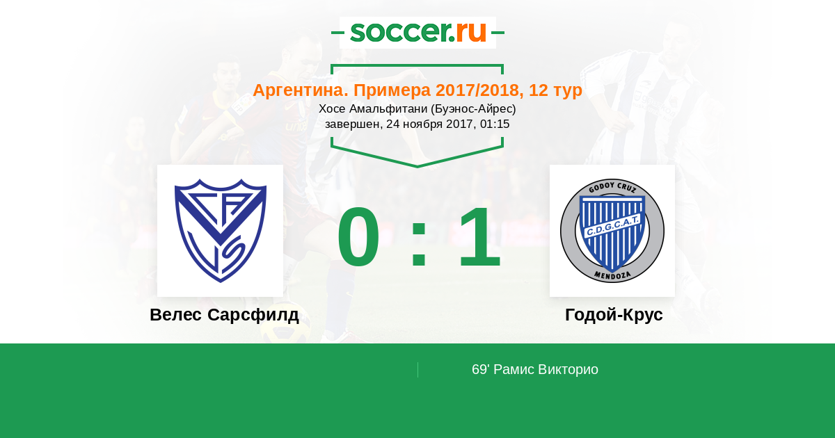 Протокол матча Велес Сарсфилд против Годой-Крус