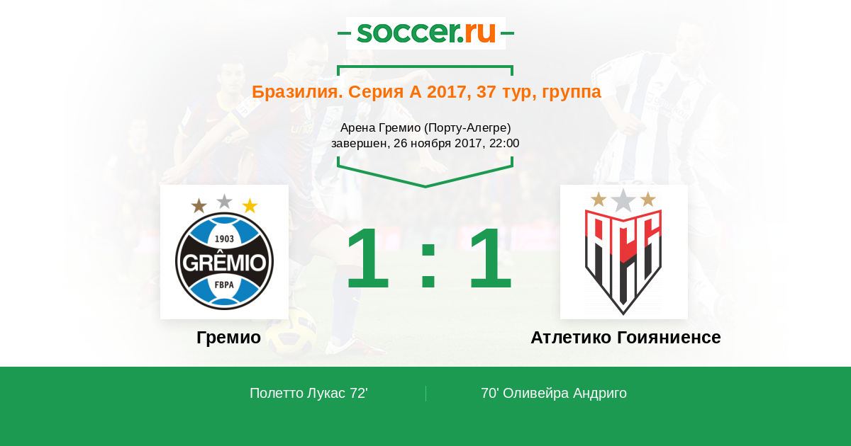 Протокол матча Гремио против Атлетико Гоияниенсе