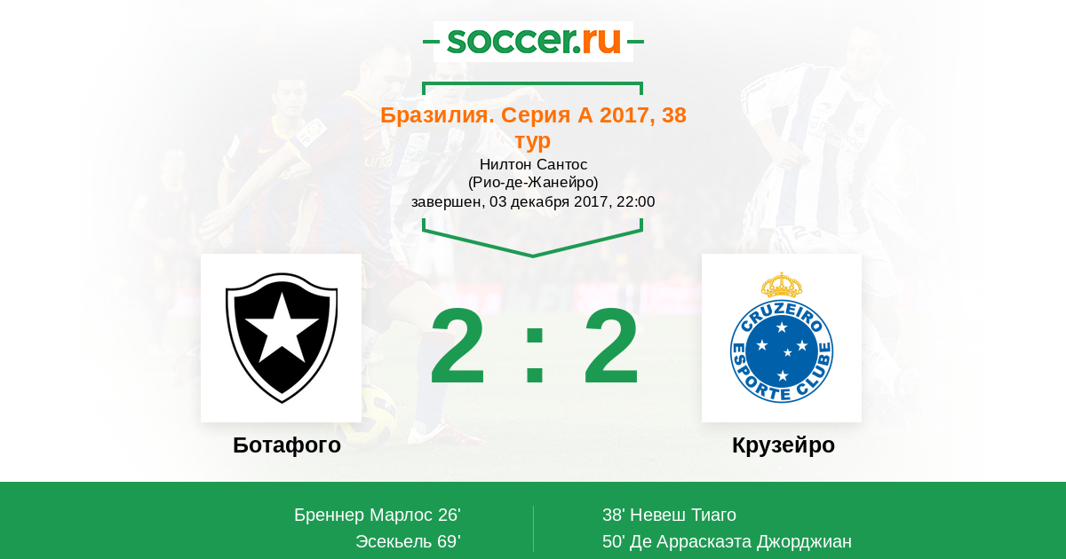 69' (2:2) Эсекьель (19) (Бреннер Марлос (9))