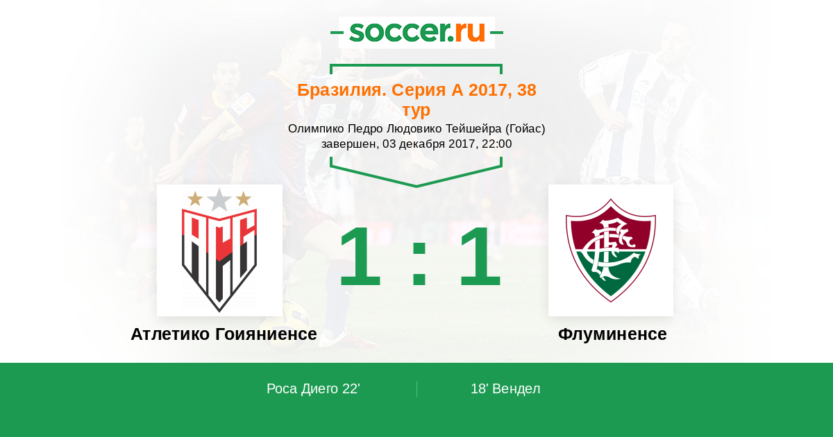 18' (0:1) Вендел (37) (Скарпа Густаво (10))