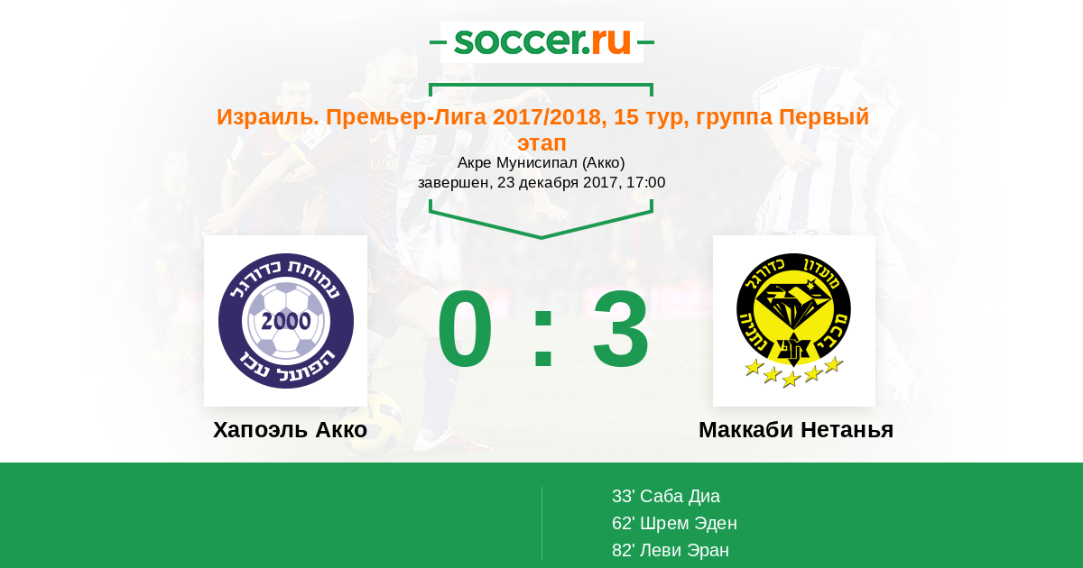 Протокол матча Хапоэль Акко против Маккаби Нетанья