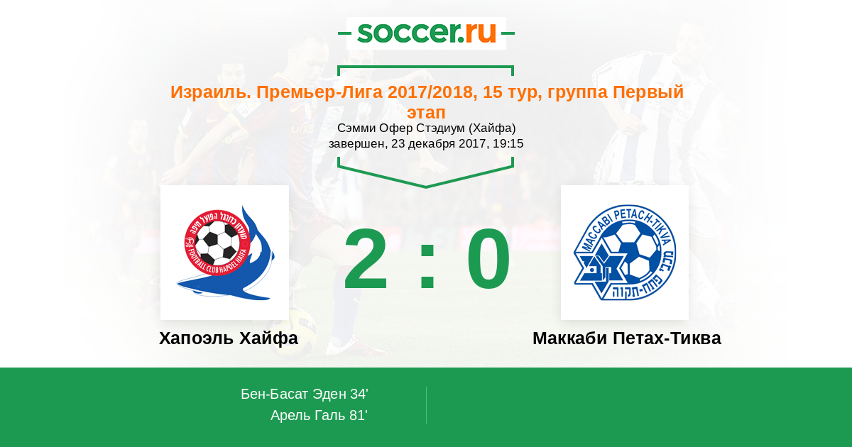 Протокол матча Хапоэль Хайфа против Маккаби Петах-Тиква
