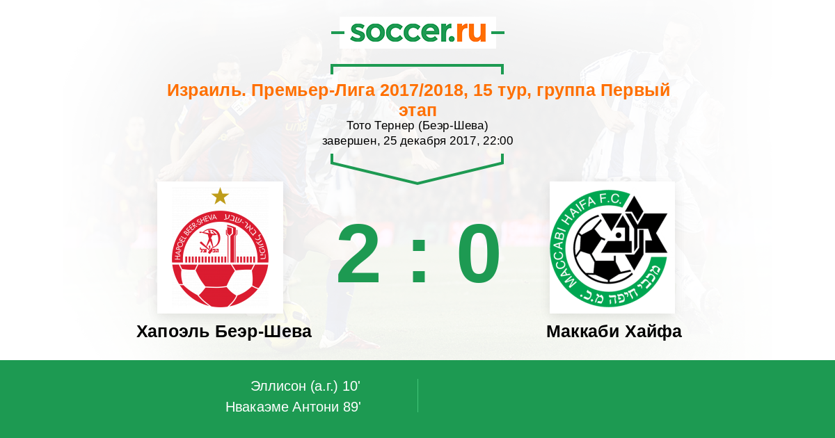 Протокол матча Хапоэль Беэр-Шева против Маккаби Хайфа