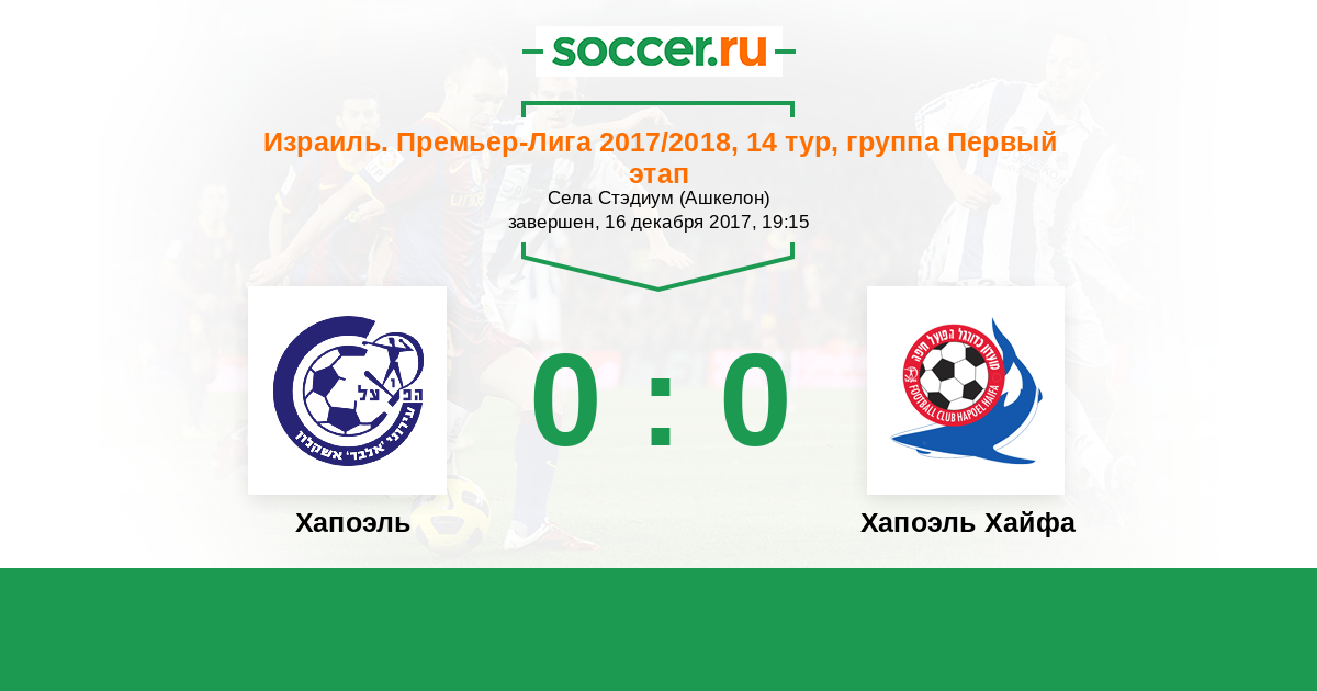 Протокол матча Хапоэль против Хапоэль Хайфа