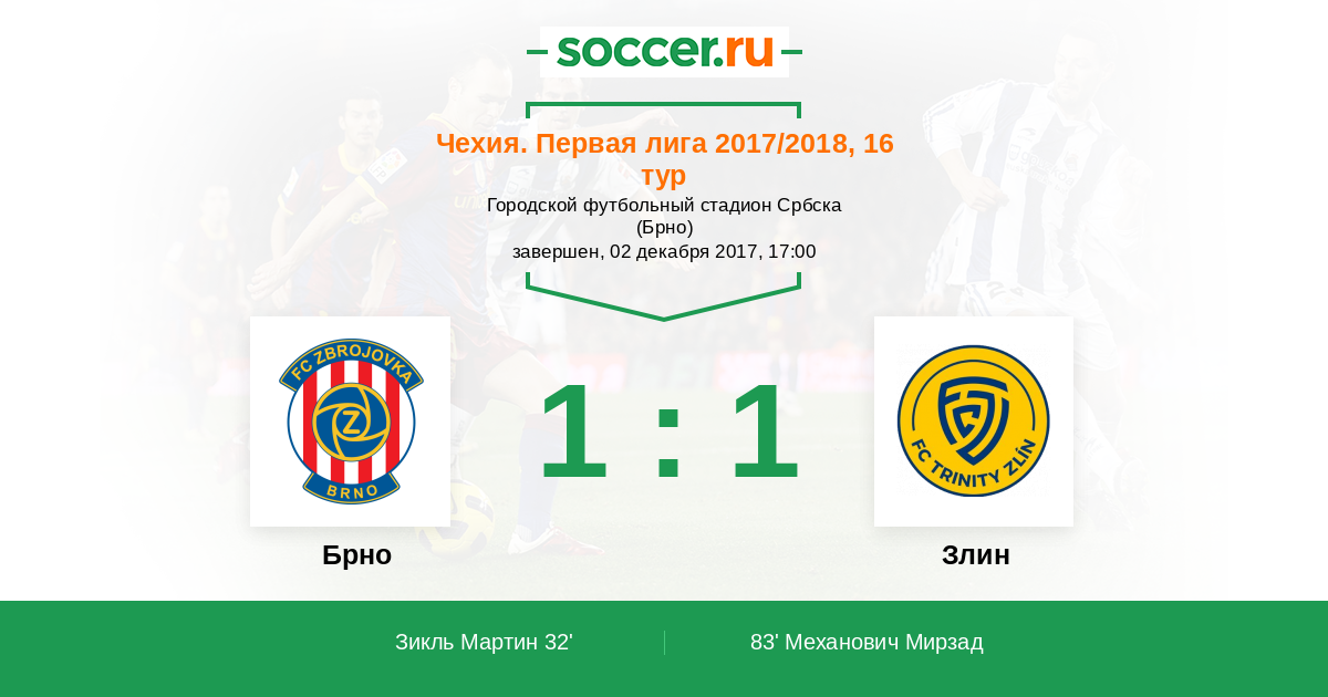 Протокол матча Брно против Злин