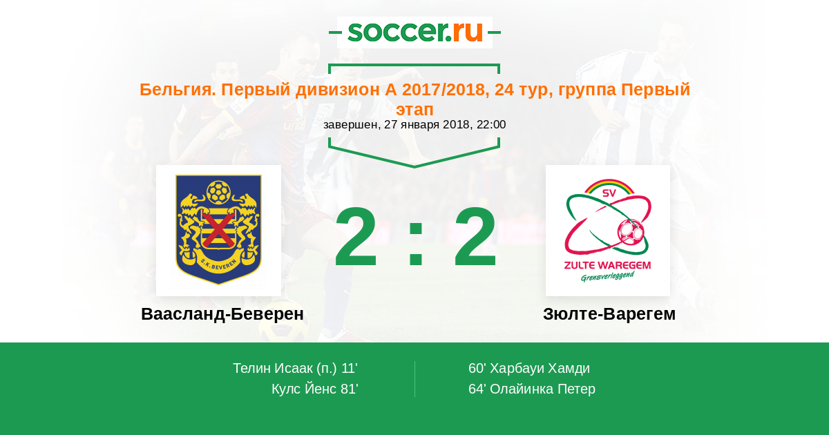Протокол матча Ваасланд-Беверен против Зюлте-Варегем