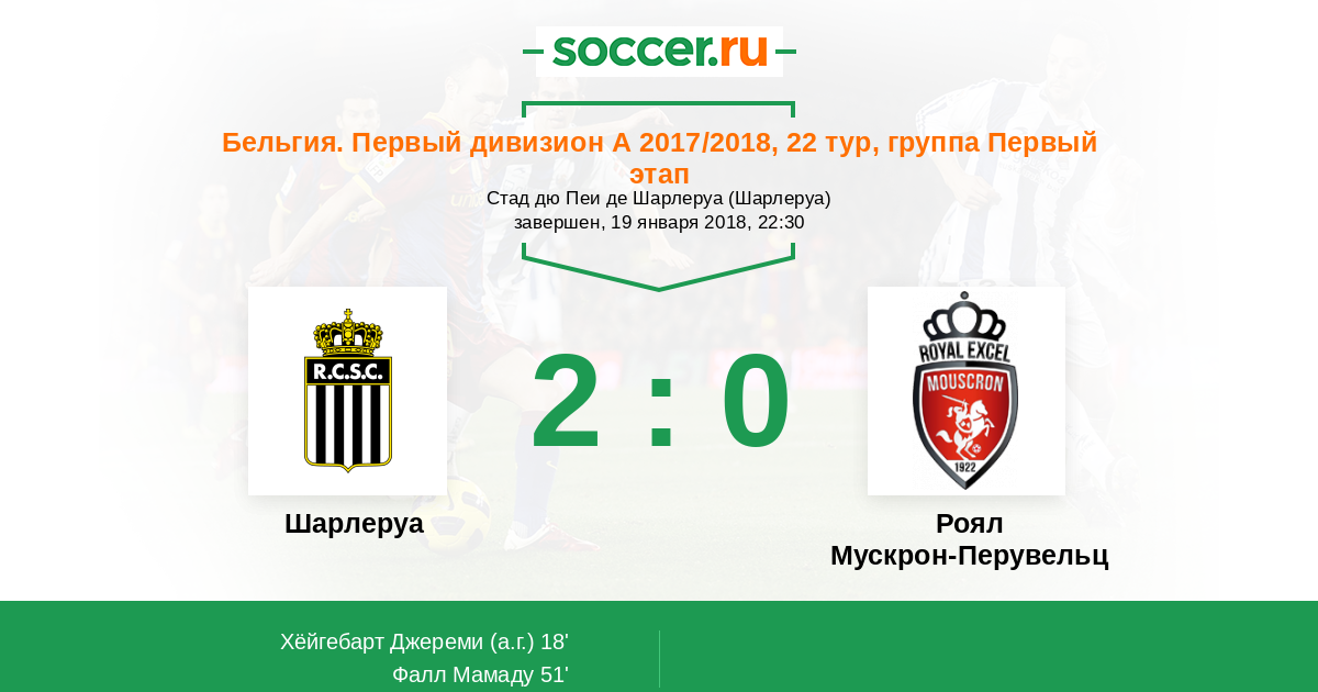 Протокол матча Шарлеруа против Роял Мускрон-Перувельц