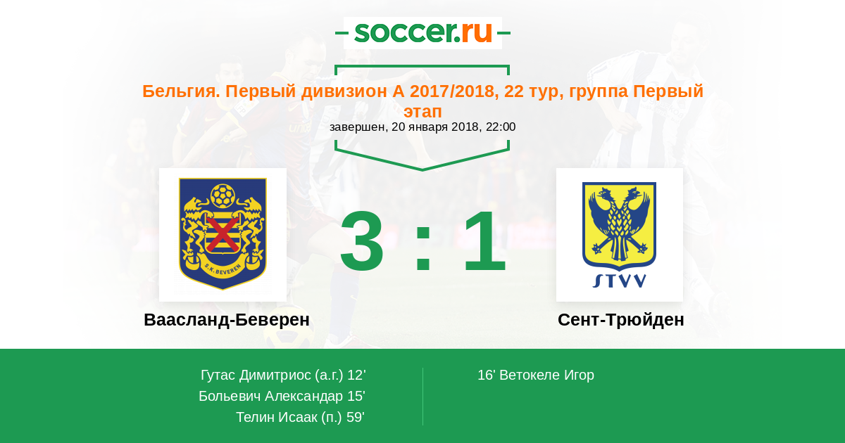 Протокол матча Ваасланд-Беверен против Сент-Трюйден