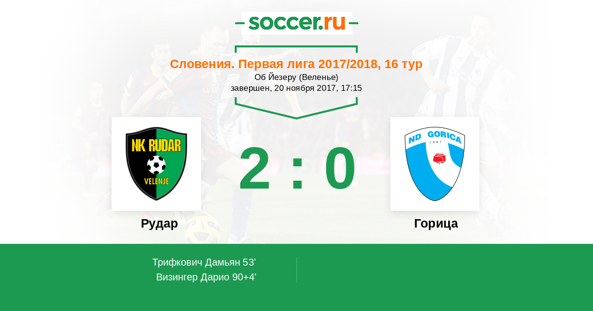 Протокол матча Рудар против Горица