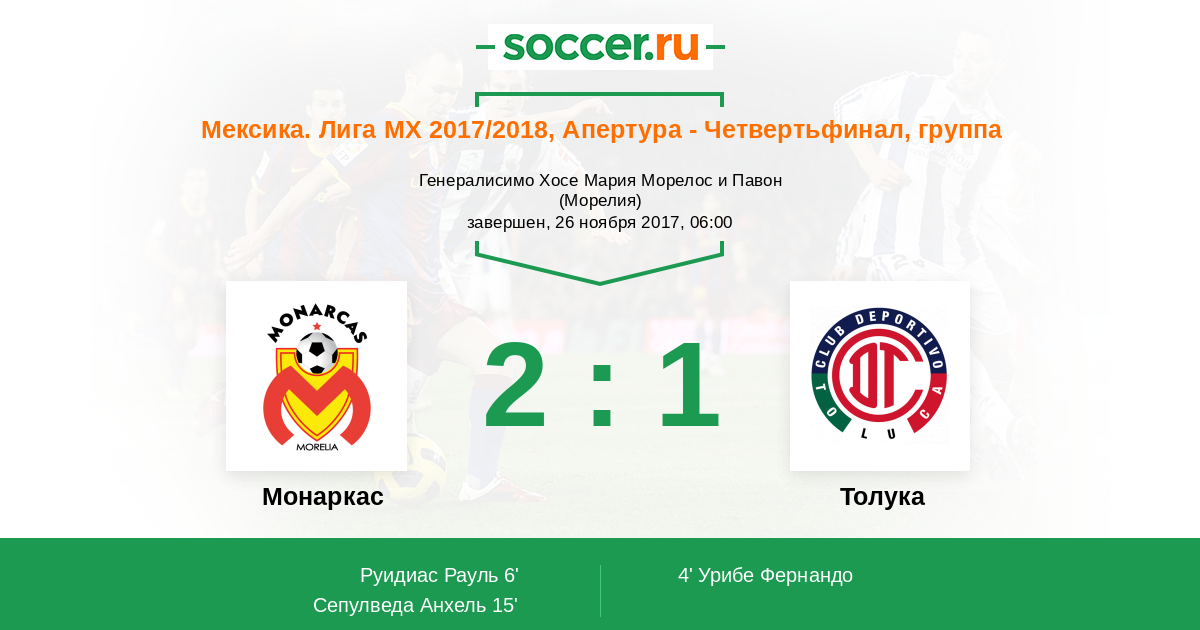Протокол матча Монаркас против Толука