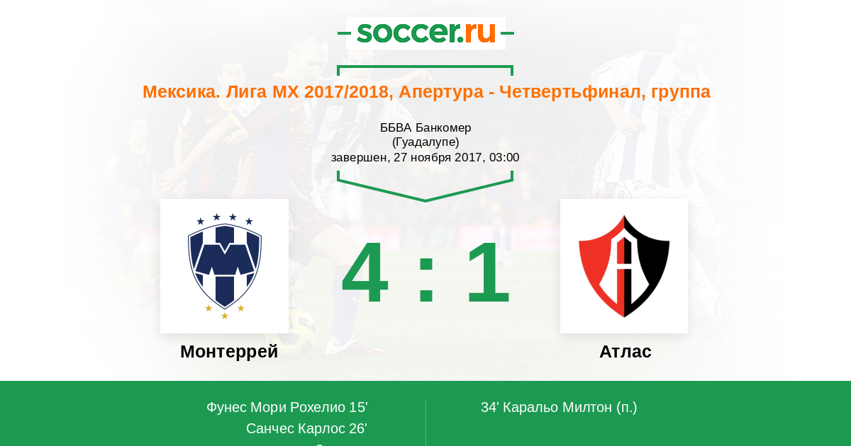 Протокол матча Монтеррей против Атлас